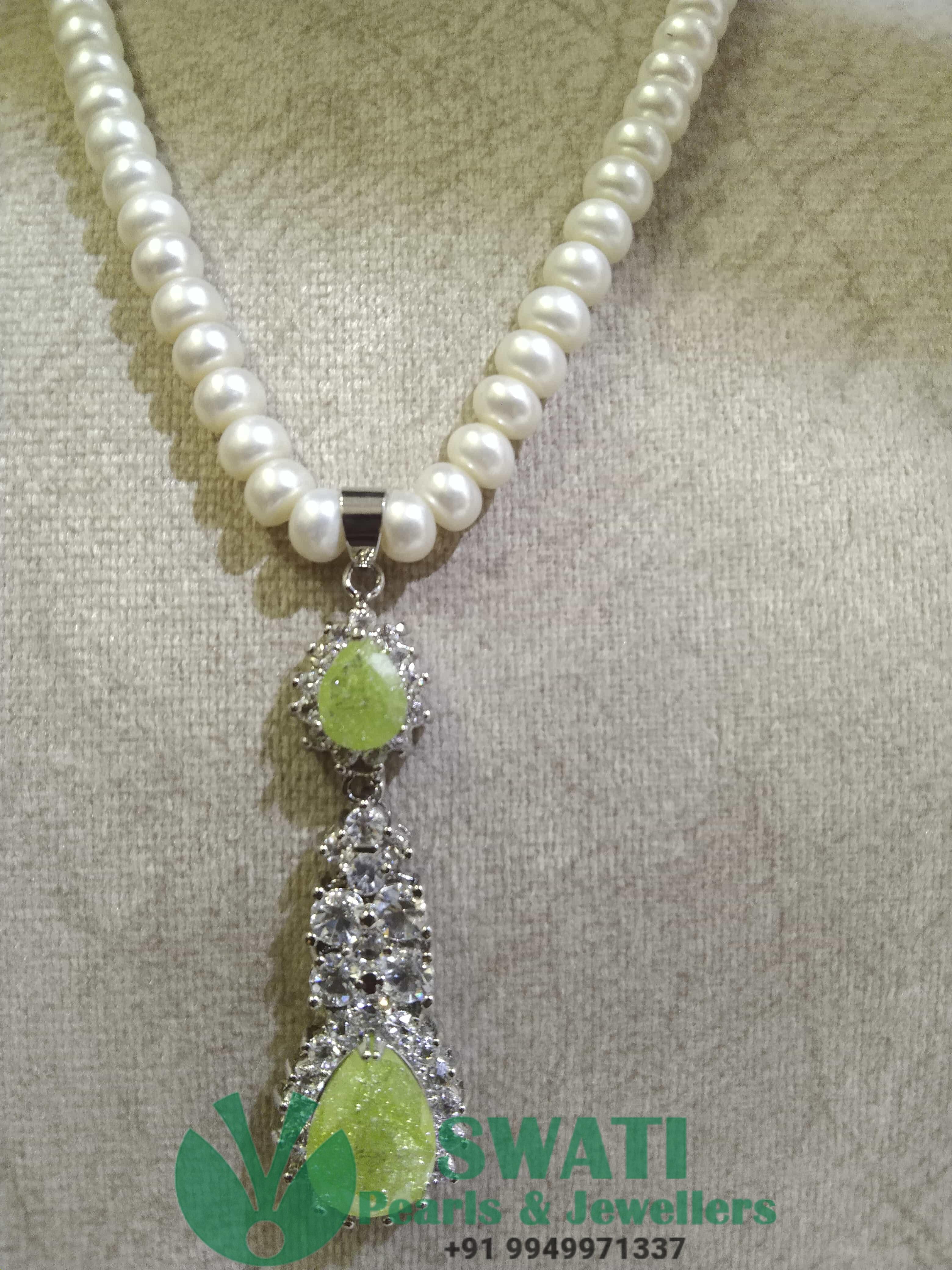 Natural white pearls with pendant and earrings set 16 inches