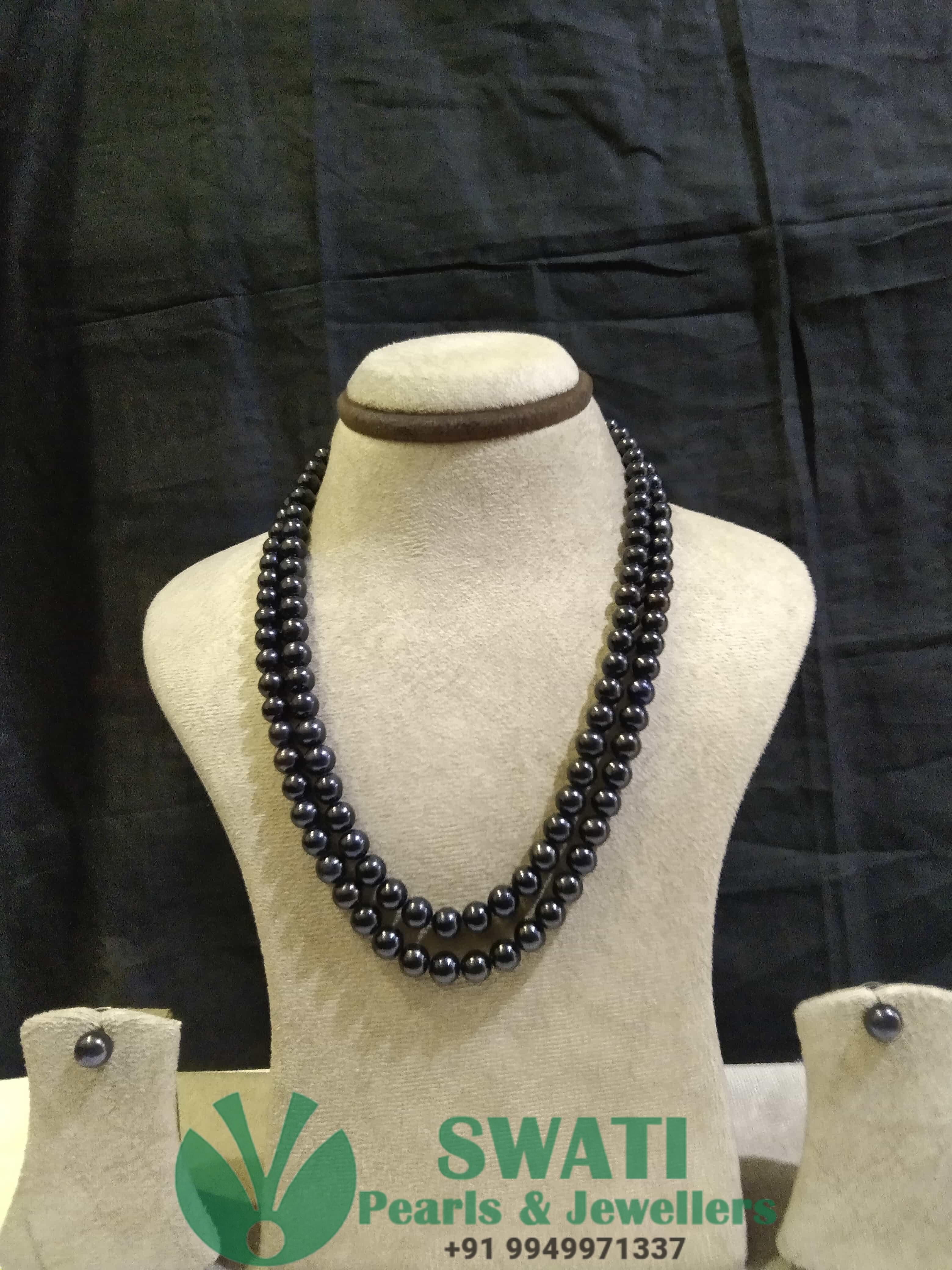 Jenuine black pearl round shape even size 16 inches 6.5 to 7mm with tops