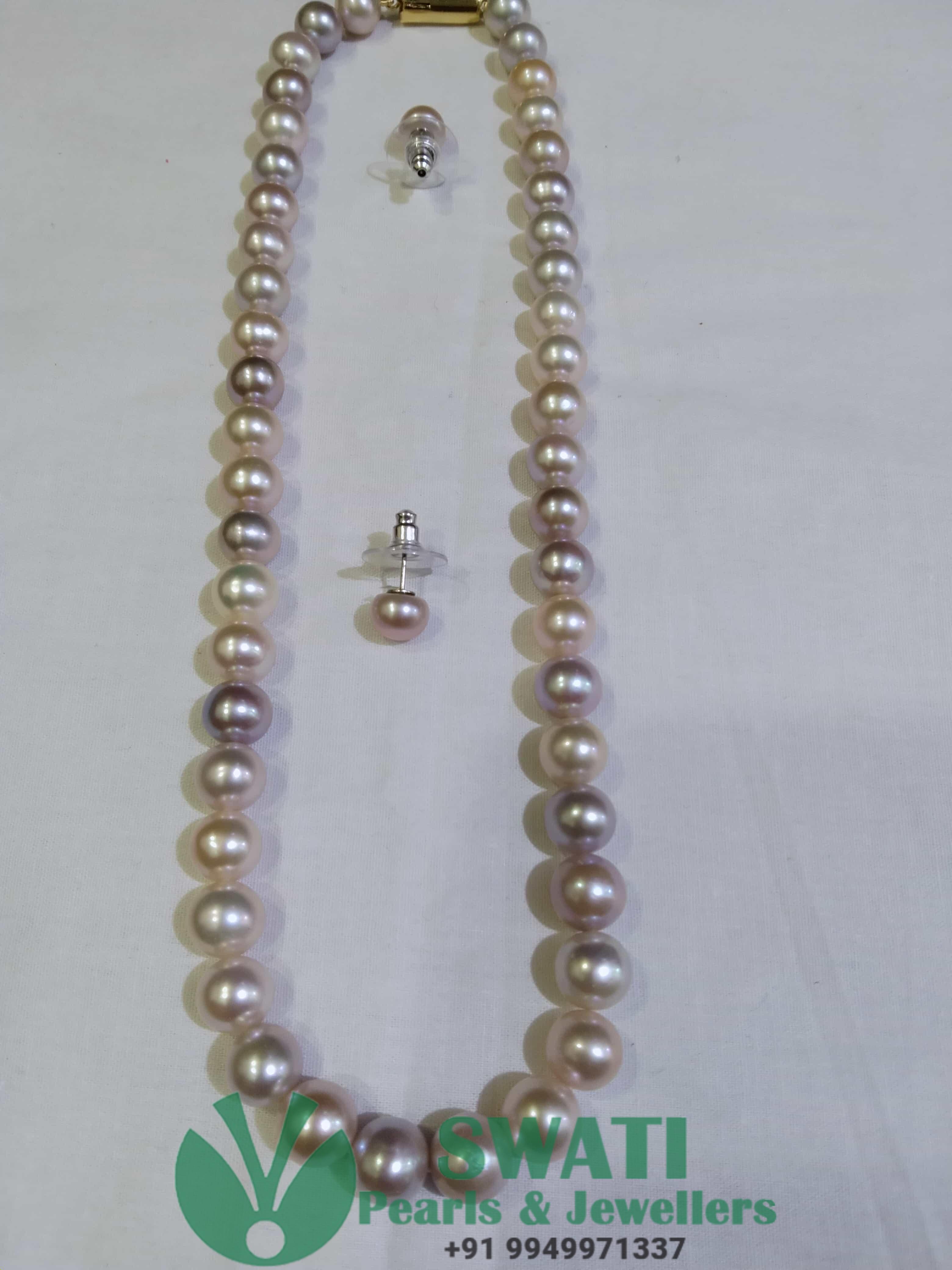 Natural pink multi colour pearls round shape 16 inches 1rows with tops 8.5MM TO 9.MM SIZE